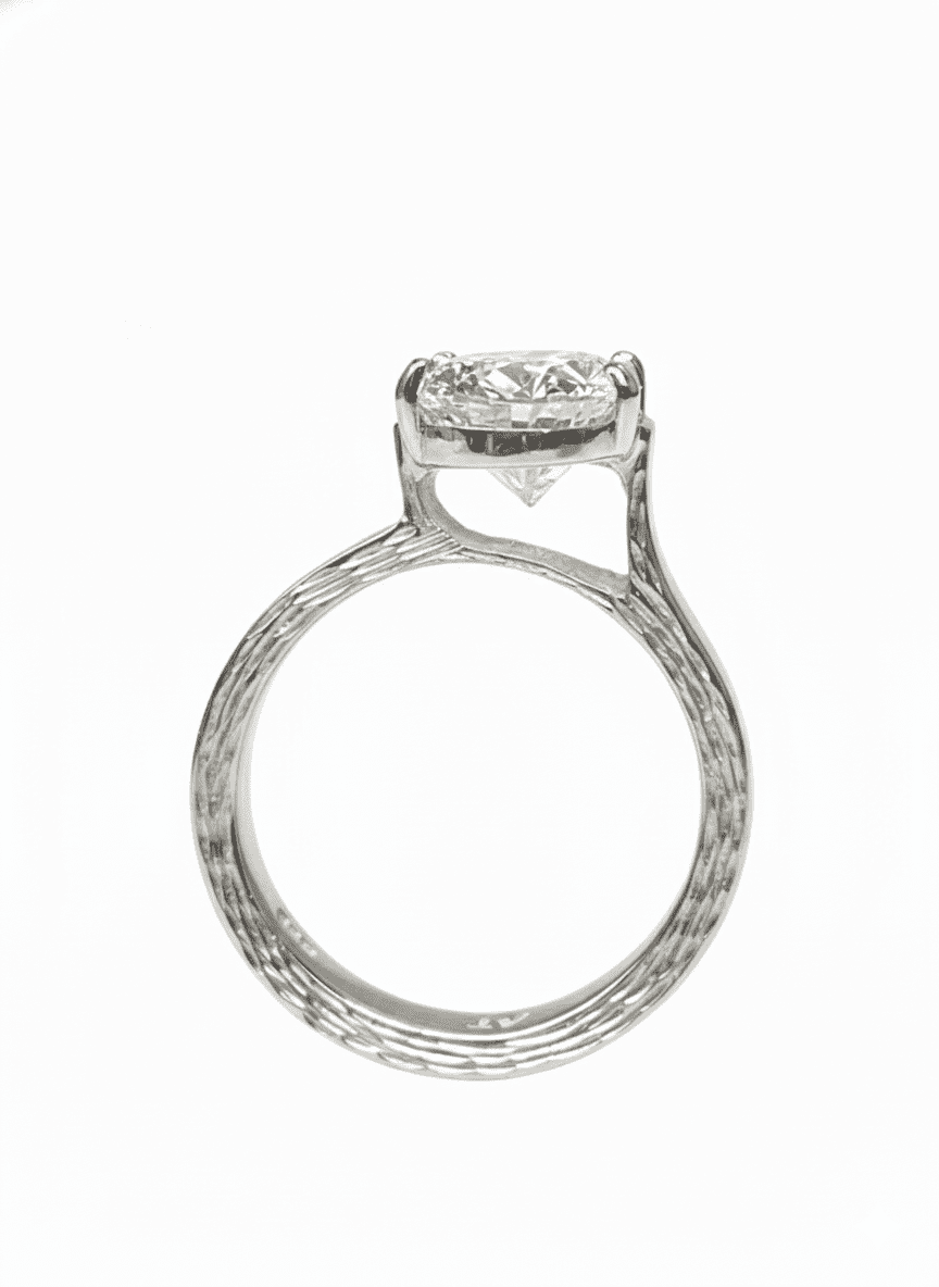 Command attention with this magnificent 925 Sterling Silver solitaire ring. It features a dazzling, premium-cut center stone that radiates exceptional brilliance. What truly sets it apart is the unique etched or textured band, adding a distinctive touch of vintage charm and sophisticated detail. This ring is a timeless statement of luxury and individual style.