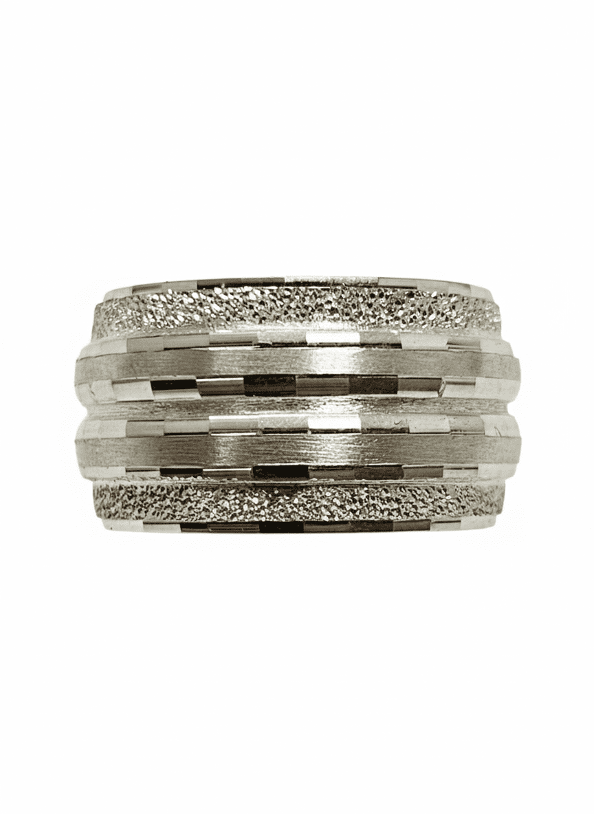 • Design: Flat profile band with a polished inner surface for comfort and a distinct vertical diamond accent.