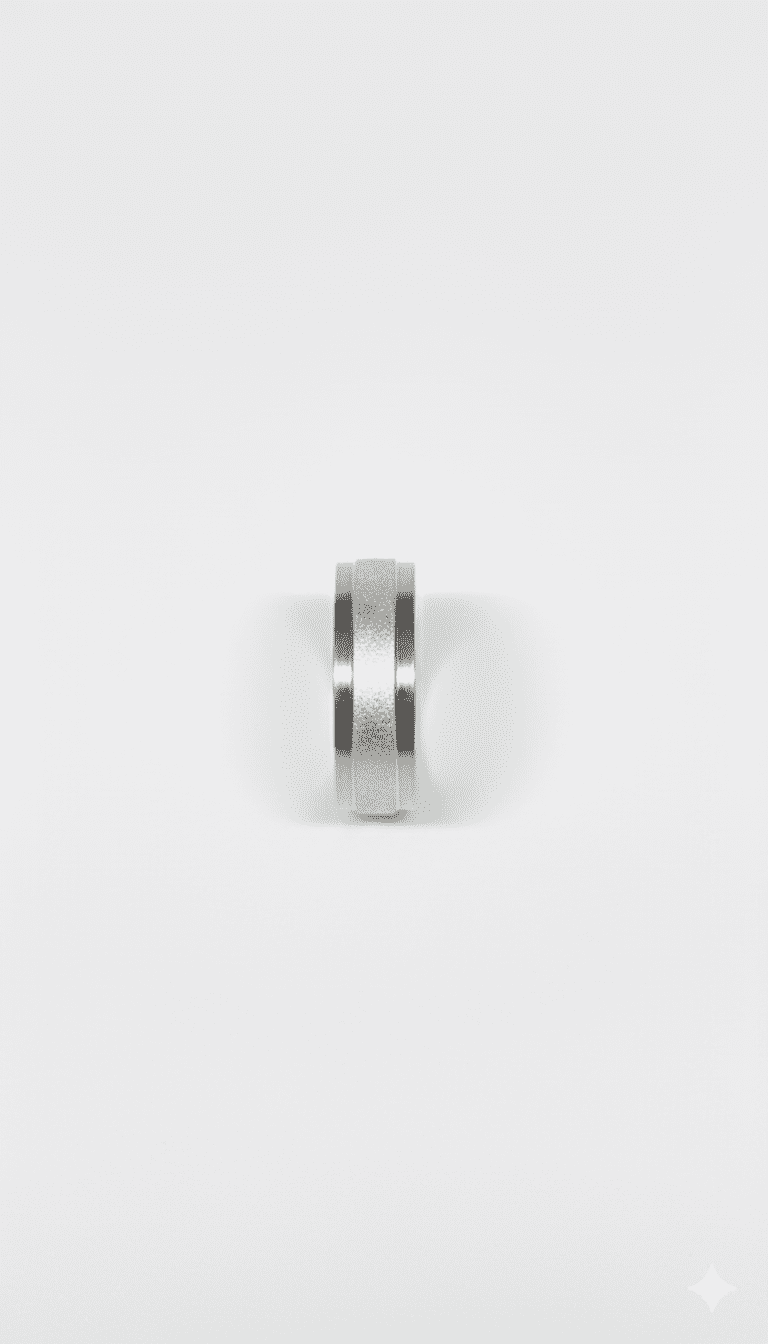Discover modern sophistication with this striking and contemporary band, perfect for those who appreciate unique detailing and enduring style. Expertly crafted from high-quality 925 Sterling Silver, this ring features a compelling contrast of finishes. A wide central panel showcases a distinctive textured , providing a matte, tactile surface. This is beautifully framed by sleek, highly polished parallel edges, creating a dynamic visual effect that is both rugged and refined.